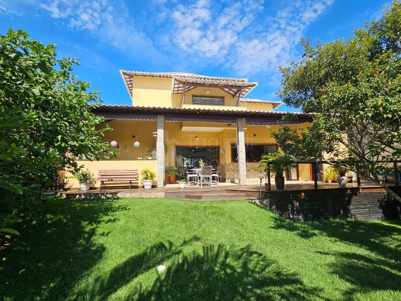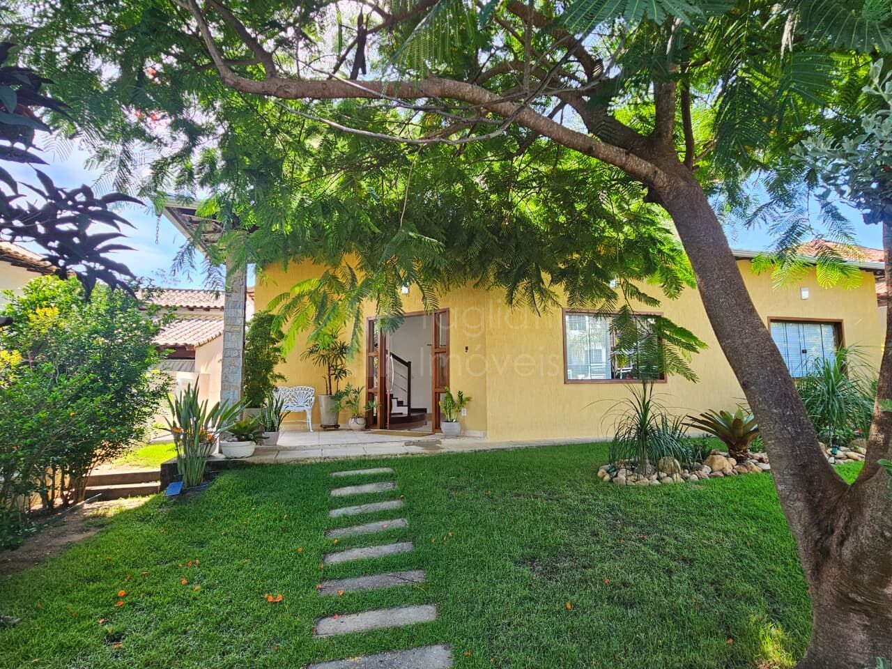 Casa duplex com pé-direito alto, proporcionando ambientes amplos, bem ventilados e com excelente iluminação natural. Imóvel com acabamento de qualidade e localizado em condomínio com acesso à lagoa.