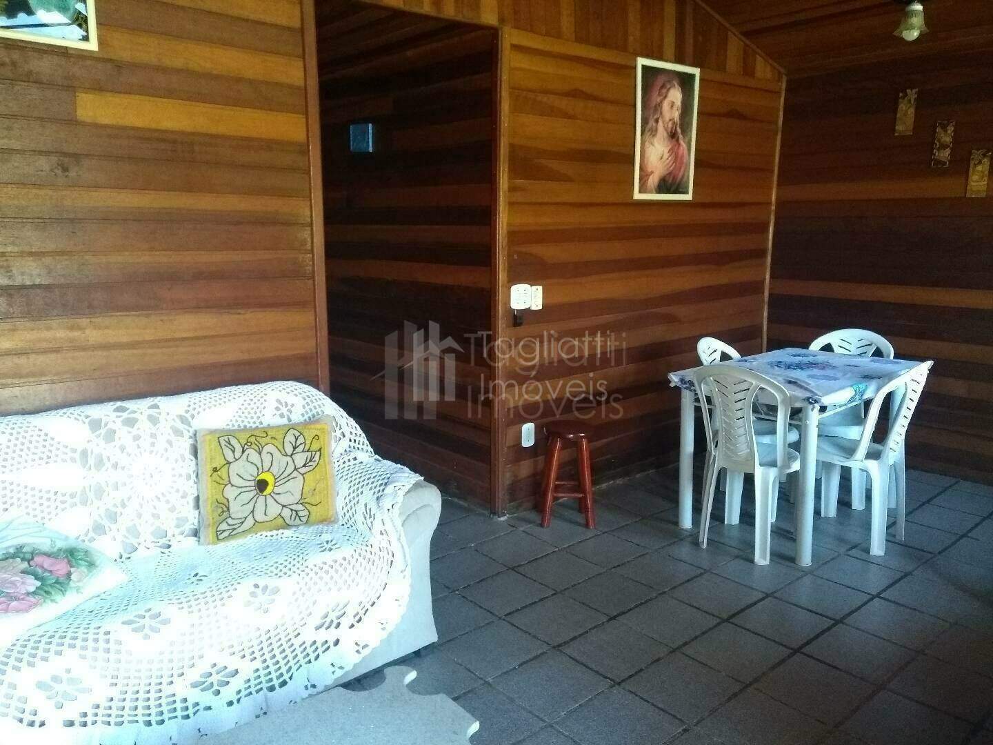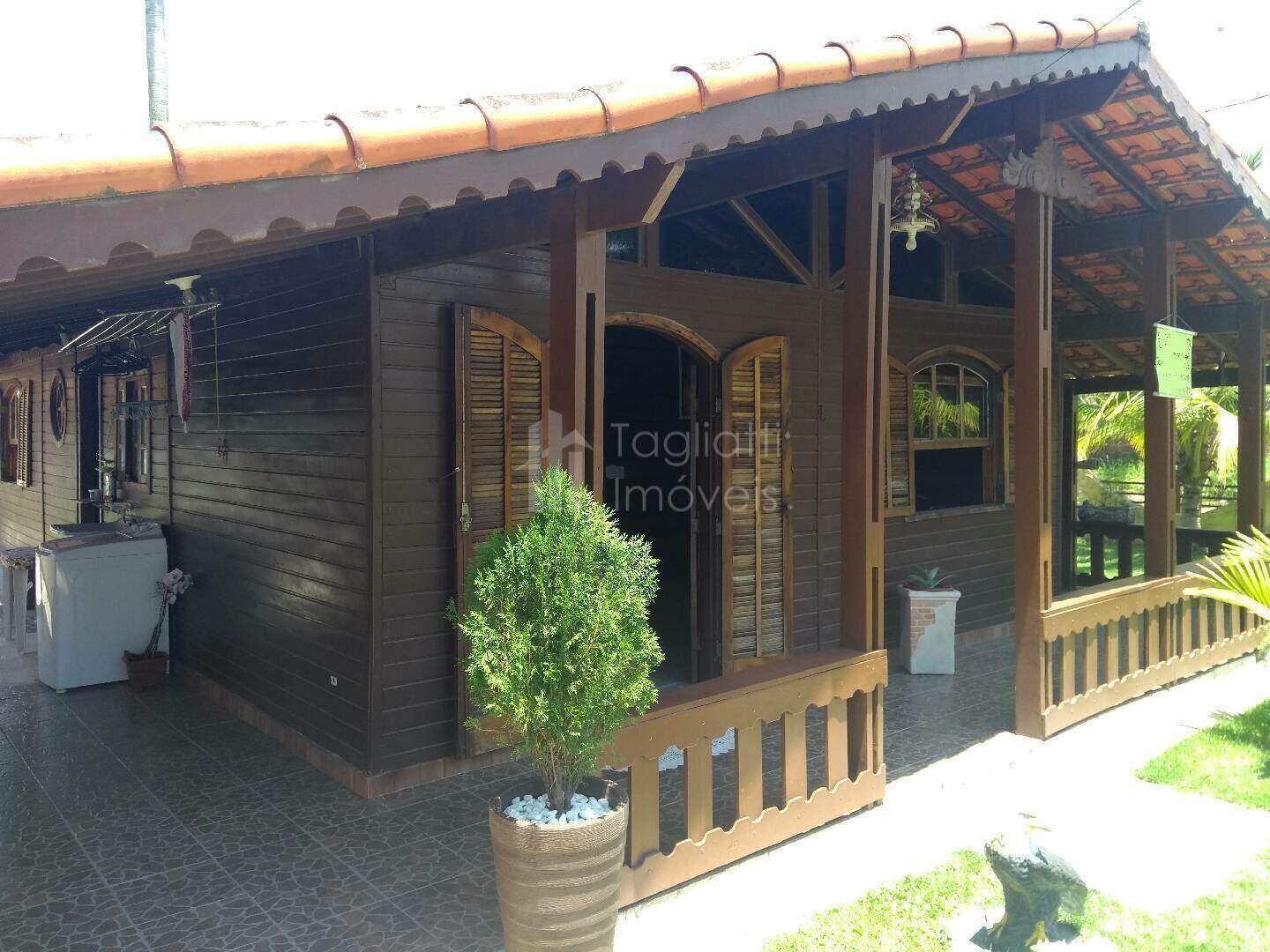 Casa de madeira com cozinha e banheiro em alvenaria, composta por: